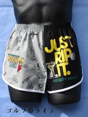ジョギングトランクス ゴルフ柄白ライン M〜LL 日本製 綿100%
